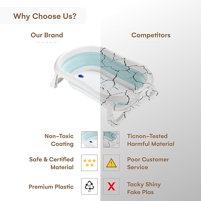 - SAFE MATERIAL – Our baby bathtub is made from non-toxic, odorless, BPA-free, lead-free, and phthalate-free materials. We prioritize your baby’s safety and comfort during every bath time.
