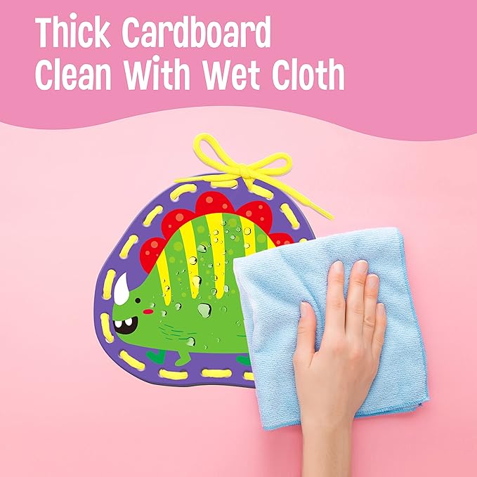 - Multiple Skills Development: The lacing card is designed to develop lacing and sewing skills, children can get diverse skills while they play the cards. It is an ideal educational toy to develop kids' hand-eye coordination, sequencing, dexterity, imagination and motor skills. And learn to tie shoelaces in advance.