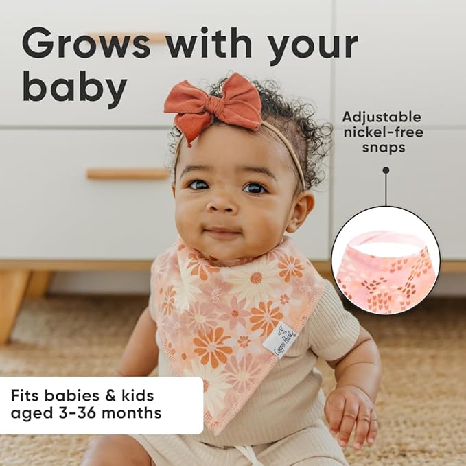 - GROWS WITH YOUR BABY: Each bib features two adjustable nickel-free snaps, allowing for a perfect fit from newborn through toddlerhood (3–36 months).