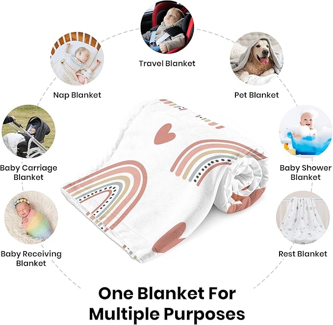 Custom Boho Rainbow Blanket for Baby Girls, Personalized Nursery Blanket with Name, Newborn Baby Girl Shower Gifts, Christmas Birthday Expecting Mom Gift