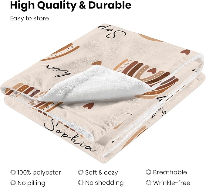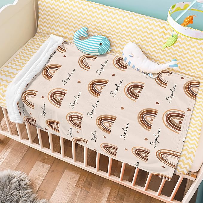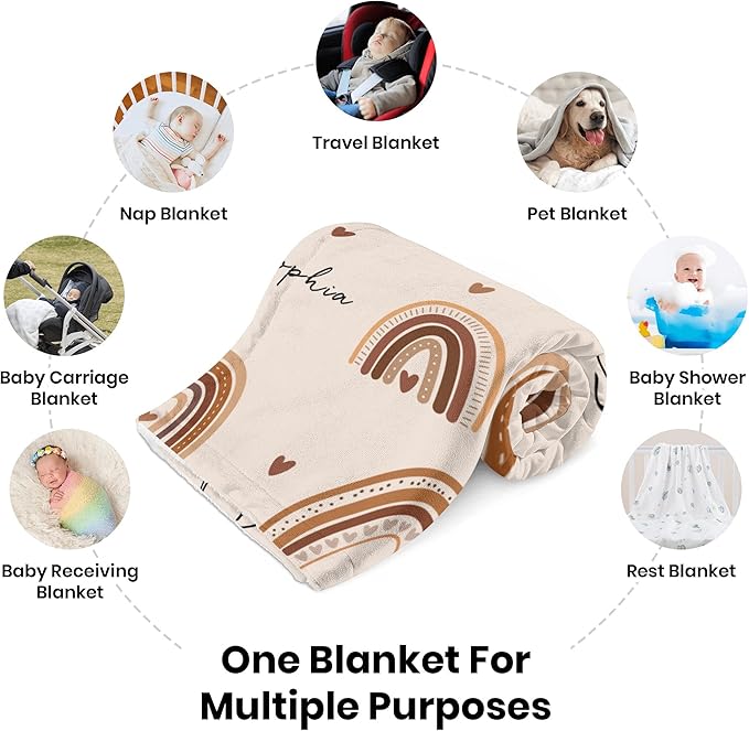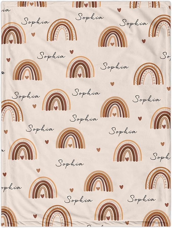 Personalized Baby Blanket with Name, Custom Nursery Blankets with Boho Rainbow, Personalized Gifts for Newborn Infant Baby Girls, Christmas Birthday Shower Gifts for Girl