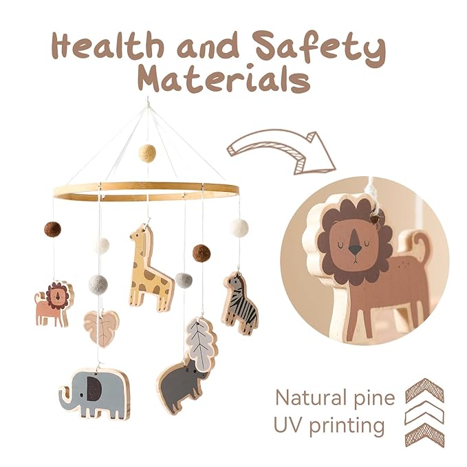 - ✨GENDER NEUTRAL BABY MOBILE - Five happy safari animal friends are dancing on this gorgeous baby crib mobile. Neutral soothing color tones make this crib mobile be suitable for both baby boys and girls. Perfectly match any nursery decor.