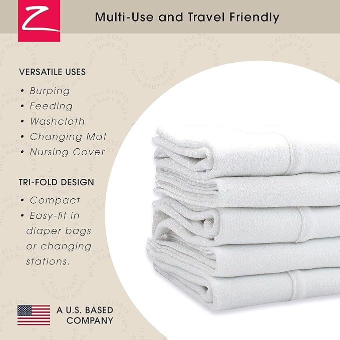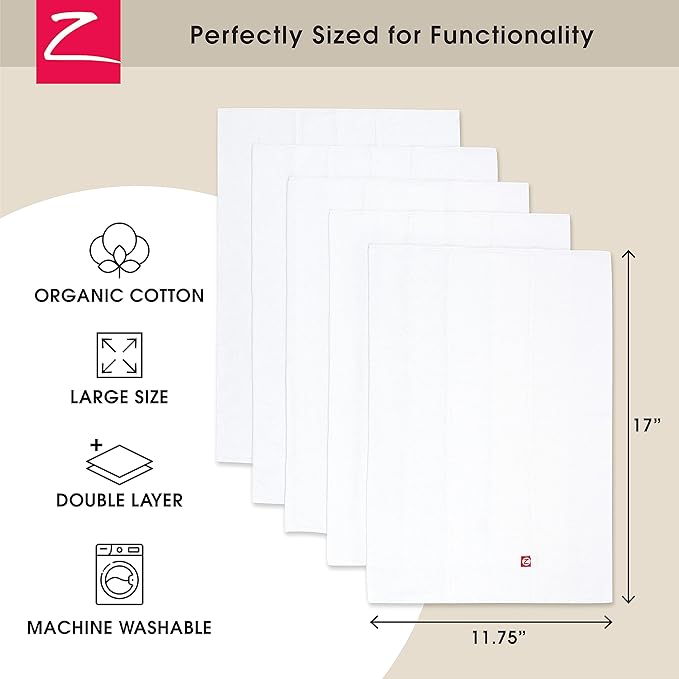 Zutano 5-Pack Organic Burp Cloths for Baby Girl & Boy, Large Cotton Burping Cloths for Babies | Absorbent Baby Spit-Up Rags | Gender Neutral Burp Clothes | Newborn Essentials, Solid White