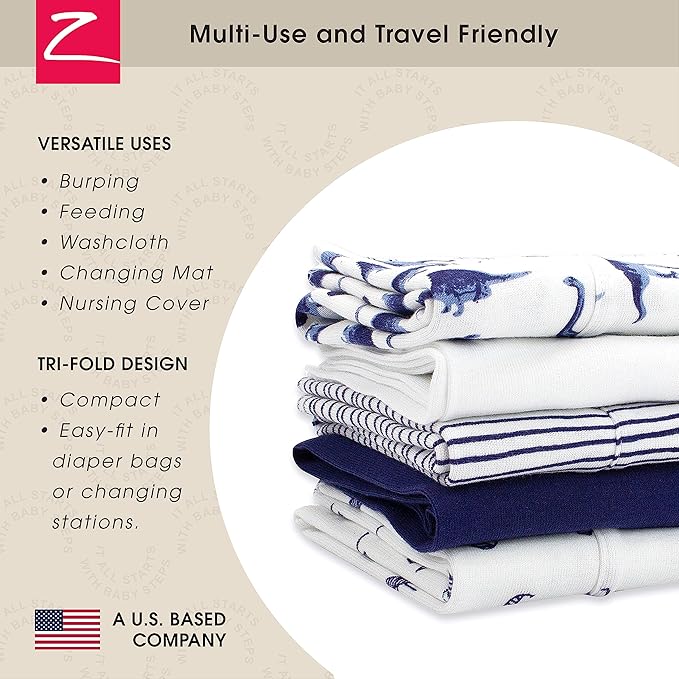 - Multi-Use and Travel Friendly - These burp clothes are perfect for every day messes: Drool, spit up, milk dribbles, impromptu changing mat, feeding time and many more uses! The trifold design creates a compact fold to easily fit in diaper bags or changing stations.