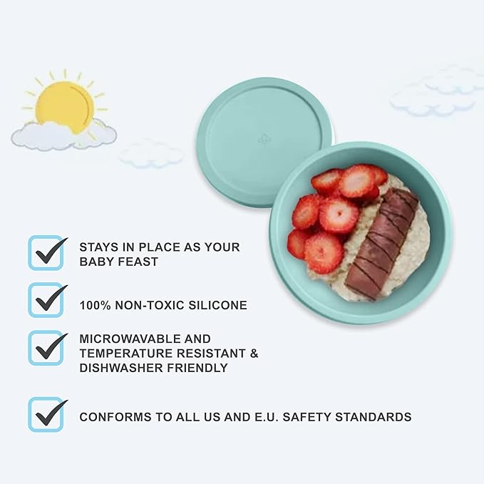 - MESS-FREE BABY BOWL: Make mealtimes a fun learning experience for your toddler without the mess with our suction cup bowls for babies. Keep your baby's food where they're supposed to be without worrying about spilling. Our baby bowls are a great way to help your little one learn self-feeding skills. Our baby silicone bowl also features a lid to keep food fresh and free from contamination!