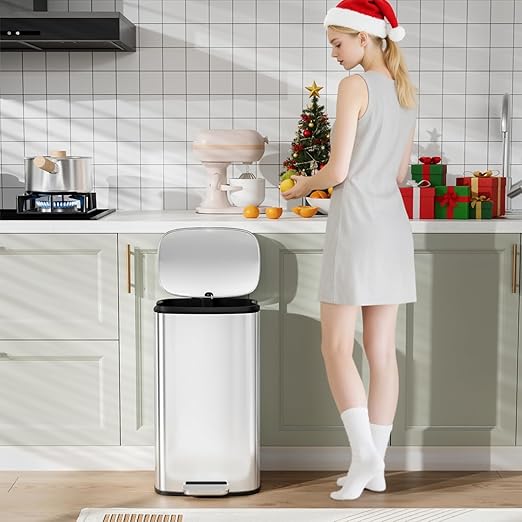 - 【WON'T DISTURB YOU】Using ABS hydraulic deceleration technology, the trash can lid can be slowly and gently closed when the pedal is released, without making a lot of noise, and it will not disturb your family when disposing of garbage.