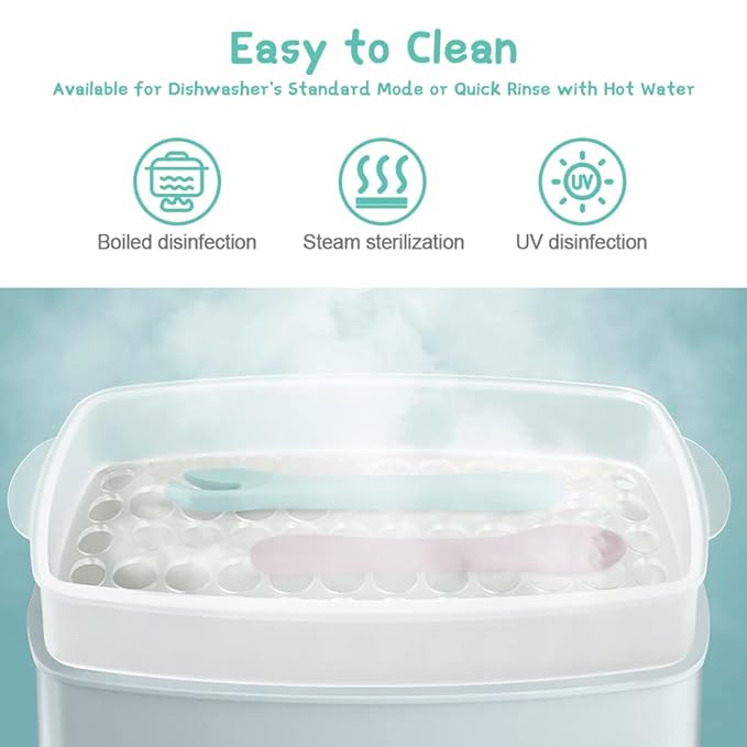 - đ„ŁăEasy to CleanăFirst Stage Feeding Spoons and forks are very easy to clean because they are made of silicone, just rinse with soap and warm water. They are also dishwasher and boil-safe. Toss them in the dishwasher for a quick clean, or boil them for a deeper clean!