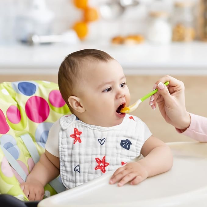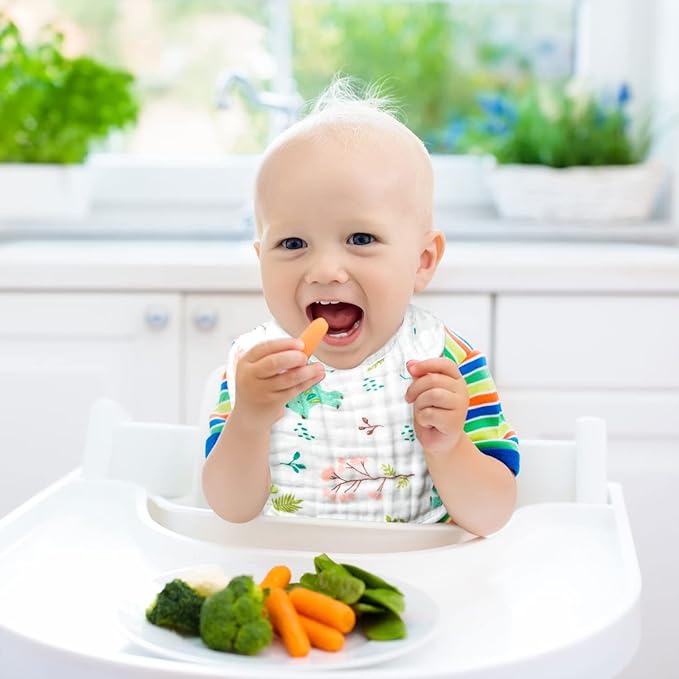 - Absorbent Bibs: Our baby bibs have 6 layers of soft cotton fabric with good absorbency to effectively absorb drool and drips. Keeps baby dry by preventing liquids from seeping into clothing and skin.