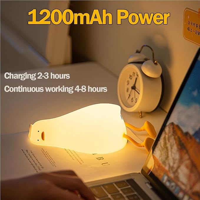 - 【3 Different Modes】 The cute ducky light has 3 light-up modes, mode 1: tapping can cycle to adjust the brightness, will not automatically turn off the lights; mode 2: tapping cycle to adjust the brightness, 30 minutes lights automatically turn off the lights; mode 3: always 50% brightness; accompany the whole night, so that children are no longer afraid of the dark before bed.