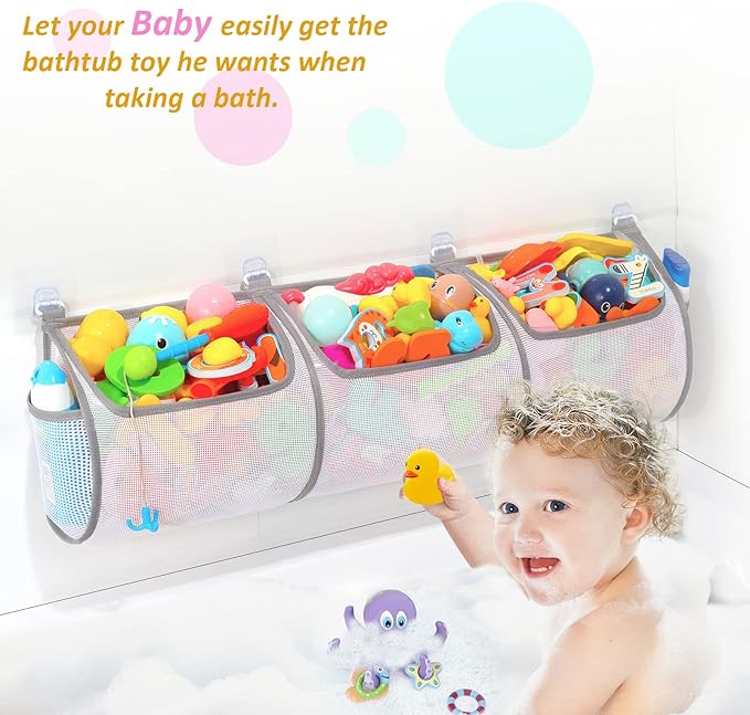 - LARGE CAPACITY- With the increase of the capacity of the bath toy storage room, it can accommodate all baby bath toys and keep the bathroom clean and tidy