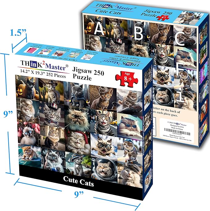 Think2Master Cute Cats 250 Pieces Jigsaw Puzzle Featuring heartwarming Kittens and Cats. Fun Toy for Kids, School & Families. Great Gift for Boys & Girls Ages 8+. Size: 14.2” X 19.3”