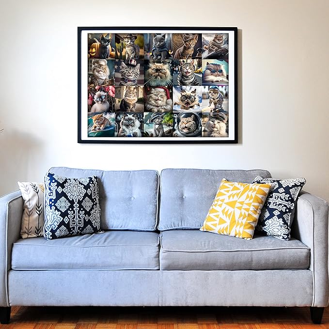 - 【Cute Cats】 - This puzzle is perfect for cat lovers and puzzle enthusiasts alike, with its vibrant colors, high-quality pieces, and 20 adorable cats including Shorthair, Ragdoll, Russian Blue, Turkish Angora, American Curl, Chartreux, Abyssinian, Siberian, British Longhair, Bobtail, Persian, Siamese, Manx, Ragamuffin, Birman and Scottish Fold. These furry friends are in adorable outfits including superhero, astronaut, cowboy, santa, pirates, halloween and princess.