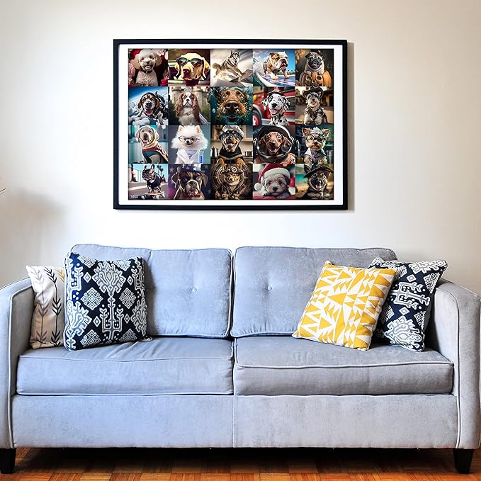 - 【Cute Dogs】 - This puzzle is perfect for dog lovers and puzzle enthusiasts alike, with its vibrant colors, high-quality pieces, and 20 adorable dog including Bulldog, Boxer, Corgi, German Shepherd, Poodle, Labrador, Siberian Husky, Pug, Beagle, Spaniel, Irish Setter, Dalmatian, Schnauzer, Golden Retrievers, Pomeraanians, Rottweiler, Dachshund, Yorkshire Terrier. These furry friends are in adorable outfits including superhero, fireman, cowboy, santa, pirates, halloween and princess.