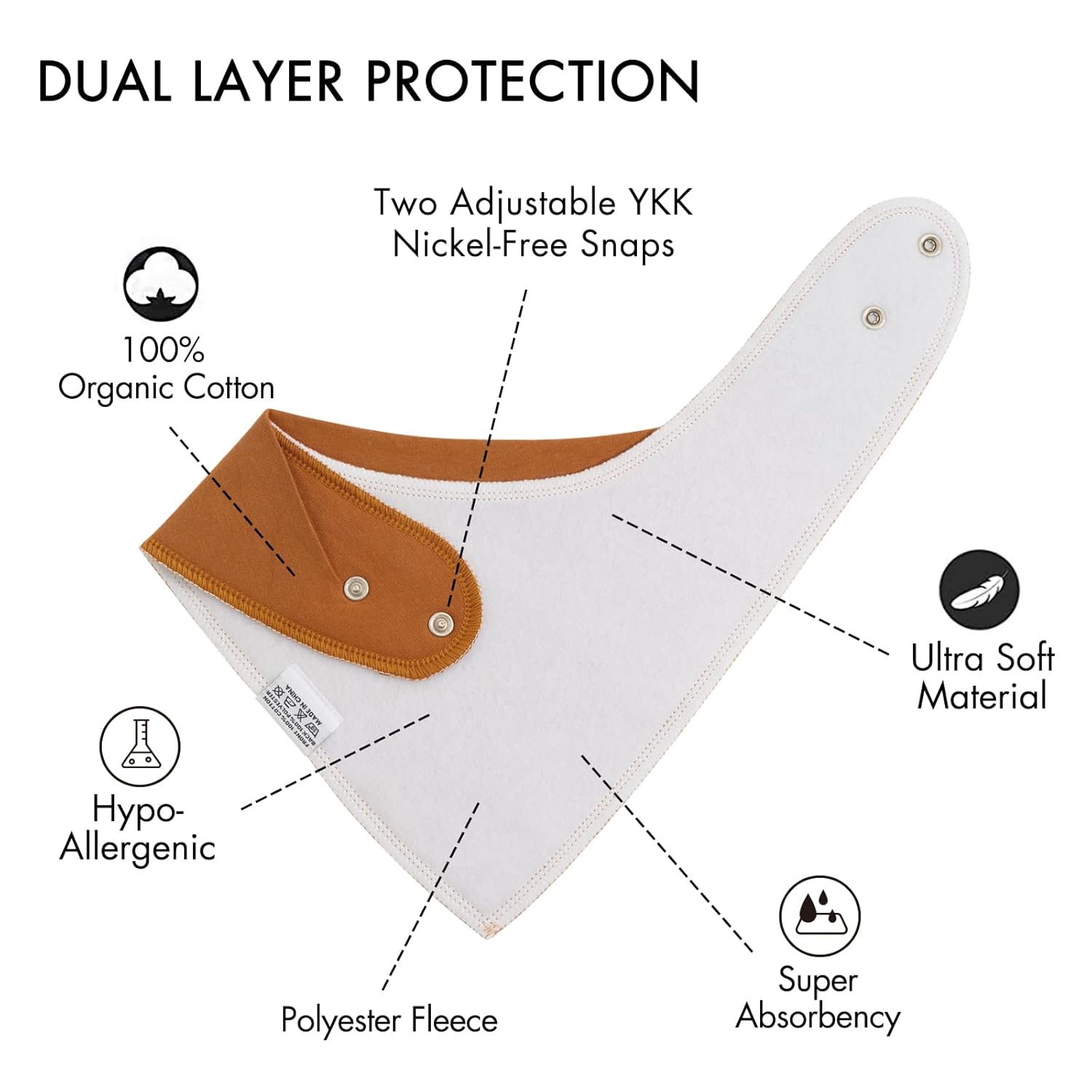 - Multi Functional Use - Our baby bibs for drooling and teething,provide full coverage for baby’s torso and stays flat on your baby’s chest at all times. They are lightweight, plushy, ultra soft and suitable for all skin types including sensitive skin. You can use them as drool bibs, feeding bibs, for burping, spills and mess, or as a handkerchief while on the go.
