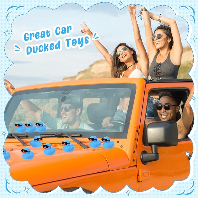 - Products Include: you'll receive 36 blue small rubber ducks, paired with 36 black mini glasses, enough to share with your family or friend; Besides, these ducks and sunglasses are separate, you can wear sunglasses on the ducks'eyes, cute and interesting; Note: if the accessories fall off, you can glue them back by yourself