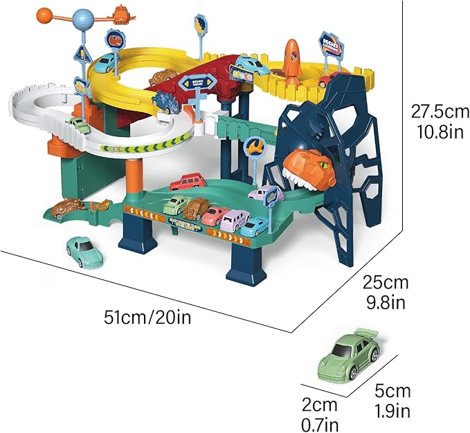 - The design of multiple curves tracks and realistic space dinosaur tracks,experience the thrill of racing, The spacecraft can rotate 360 °,let your children exploring the mysteries of space.