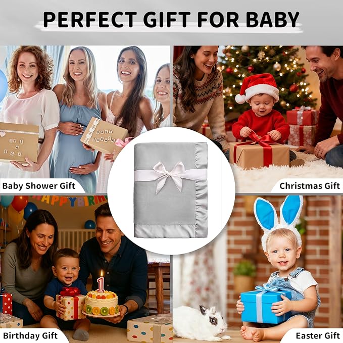 - 【Adorable & Thoughtful Design – With Luxe Satin Trim】: Finished with a silky 2-inch satin border, this blanket brings both elegance and comfort. The satin trim adds a stylish accent to cribs, strollers, or nursery décor—your baby will look even cuter wrapped in love