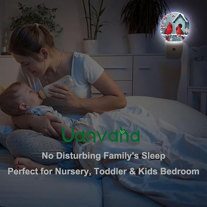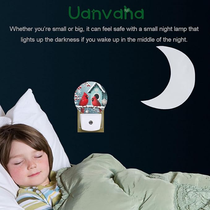 Bird Cardinal Night Light Snowy Tree Red Birds on Branch Winter Plug-in Nightlight Energy Saving 0.5W LED Lighting for Boys Girls Men Women
