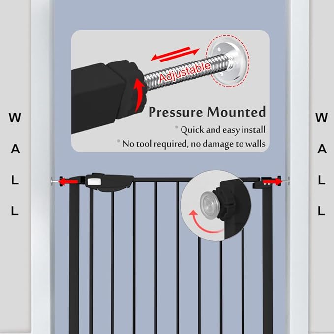 - [Easy Installation] Pressure mount installation enables easy assembly and disassembly, no tools required, no need for drilling holes, and no damage to the wall of your house. Please note: before installation there will be a gap between the latch and frame. This is NOT a defect. The gap will become narrower after proper installation. Do NOT cut the tie that holds the door to the gate before installation is complete.