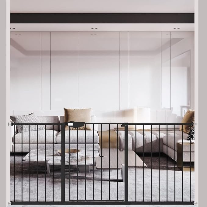 DEARBB Triple Lock Baby Gate for Stairs Doorways and House 31" to 86" Extra Wide Pressure Mounted Easy Walk Through Auto Close Safety Pet Gate Black 49.21-67.32"