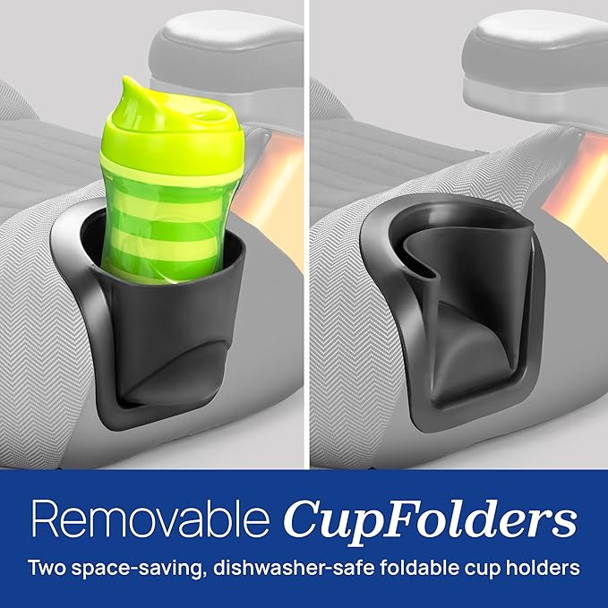 - EASY CARE — The GoFit portable booster seat features 2 dishwasher-safe, fold-away cup holders, a machine-washable seat pad and pop-out armrest covers for easy cleaning. The foam insert may be hand rinsed and hung to dry.