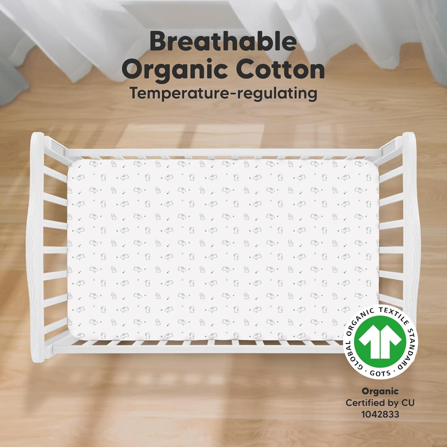 - High Quality Elastic Band - Our organic cotton crib sheets, use premium elastic SnugFit Band seamlessly concealed to ensure these standard crib sheets stay in place securely for safe and soothing sleep.