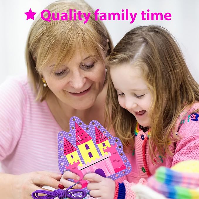 - 👸 Make 10 Easy Projects 👸 : Make a total of 10 beginner Lacing Art & Craft kit with princess, unicorn, castle, mermaid, sea animals. Tools and Instructions also included for the craft. Train your kids with hand-eye coordination and color matching skills together.