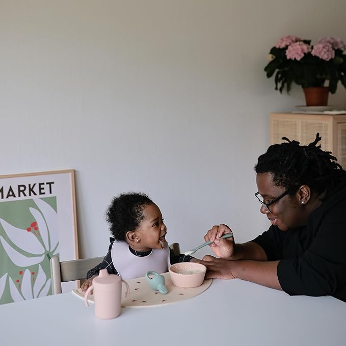 - Keep your little one clean with our fun-loving collection of silicone placemats; Designed in Sweden, our silicone mats feature classic patterns capturing a look that's both timeless and elegant; Colors pair well with our silicone bibs, bibs pacifier, and mushie pacifier clips