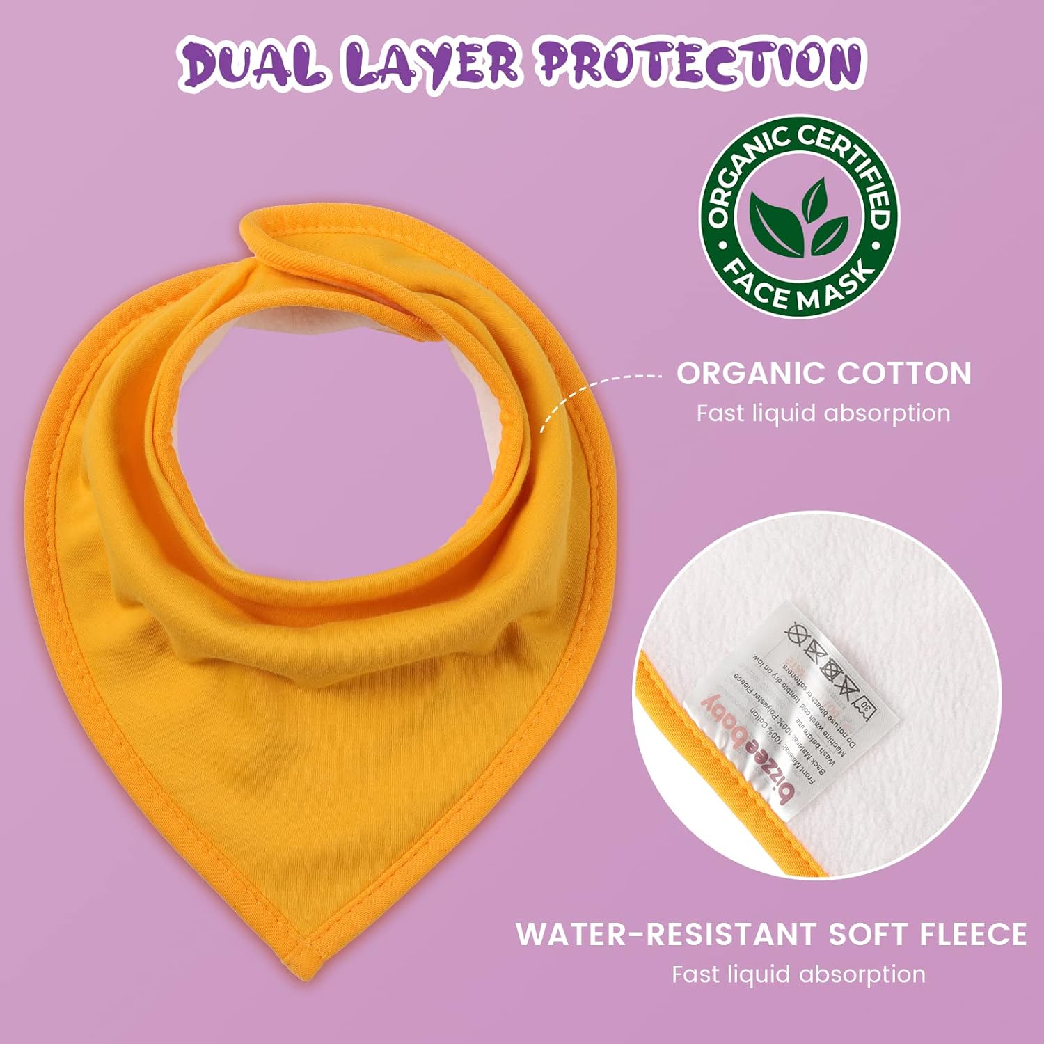 - 【8-Pack Baby Drooling Bibs】 -Baby bandana Drooling Bibs are 100% soft organic cotton on the front and polyester fleece on the back for added absorbency. The soft organic material allows your little ones to keep their cool while they drool. Super easy to clean, perfect for daily use. Machine wash and tumble dry low.