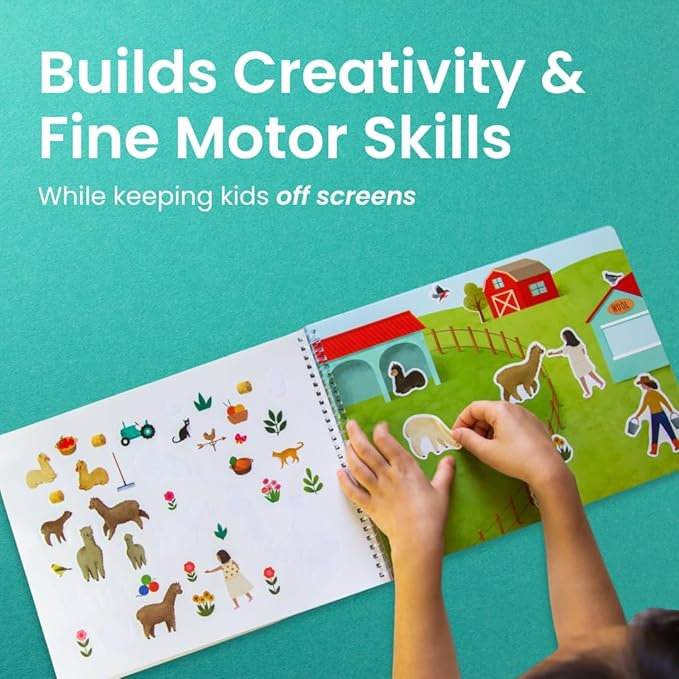 - Learn through play: Kids build fine motor skills, explore spatial awareness, and strengthen hand-eye coordination as they peel and stick stickers onto colorful scenes! Engaging in conversations about the sticker book characters will help imaginations run wild & encourage make-believe and pretend that can foster bonds between you and your child. Go ahead - play on!