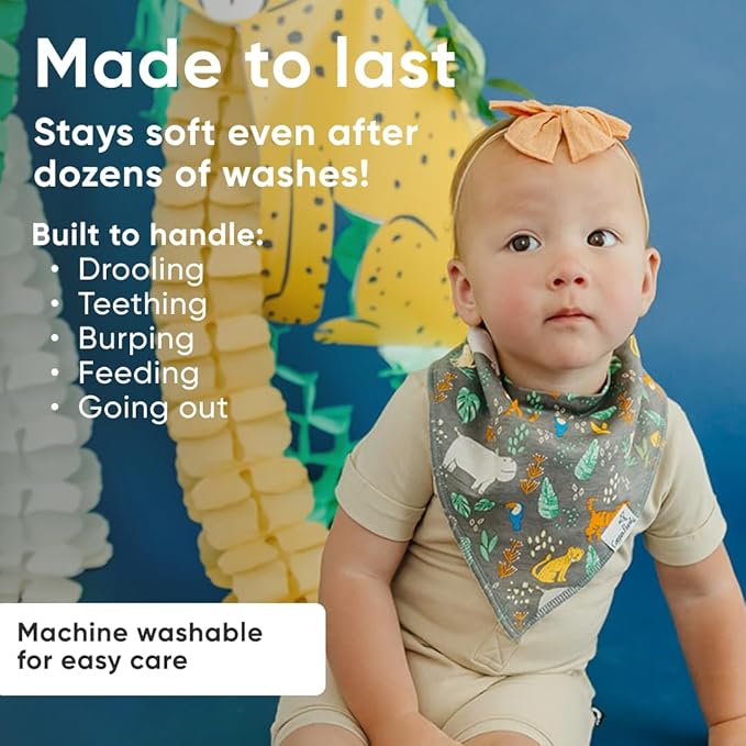 - GROWS WITH YOUR BABY: Each bib features two adjustable nickel-free snaps, allowing for a perfect fit from newborn through toddlerhood (3–36 months).