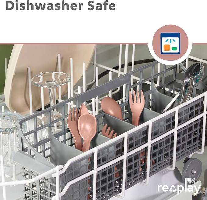 - Sustainable and Reliable: Re-Play's toddler fork and spoon set is made in the USA from recycled milk jugs, making a positive contribution to a more sustainable environment