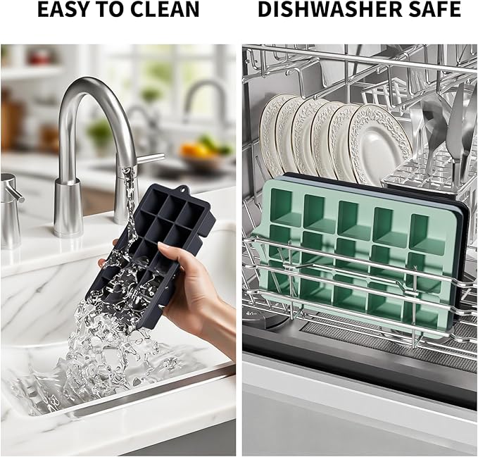 - Food Grade Silicone Ice Cube Tray: Our silicone ice cube trays are made of food grade silicone which is BPA free durable safety and odorless, they can directly contact food, for drink & food making and can be used for dishwasher, refrigerator, freezer and microwave