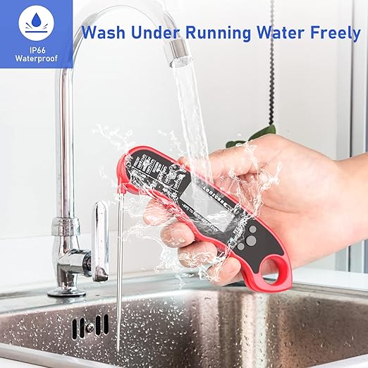 - Robust Design and Waterproof - Feel free to clean and wash probe thermometer under running water with soapy cloth. It was designed according to IP66 grade waterproof. With 4.3 inches temperature probe and made of 304 stainless steel (Food safety).