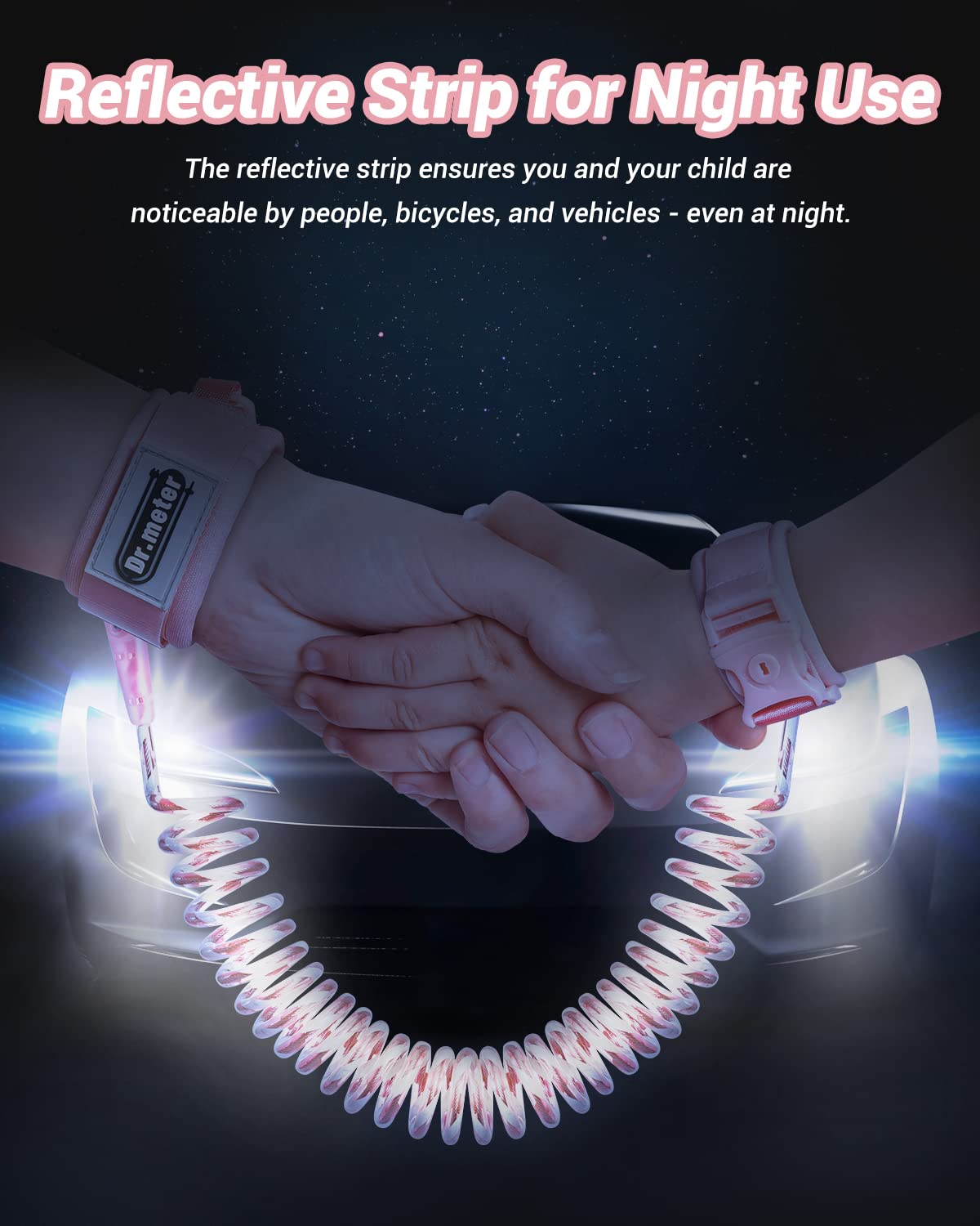 Dr.meter Anti Lost Wrist Link, 2 Pack Toddler Safety Leash with Key Lock, Reflective Child Walking Harness - Dual 8.2ft Length Pink & Green Kids Leash for Boys and Girls Outdoor Essencial