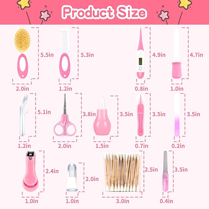 Baby Grooming Kit,Infant Safety Care Setwith Hair Brush Comb Nail Clipper Nasal Aspirator, Baby Essentials Kit for Newborn Girls Boys (14 PC-Pink Kit)