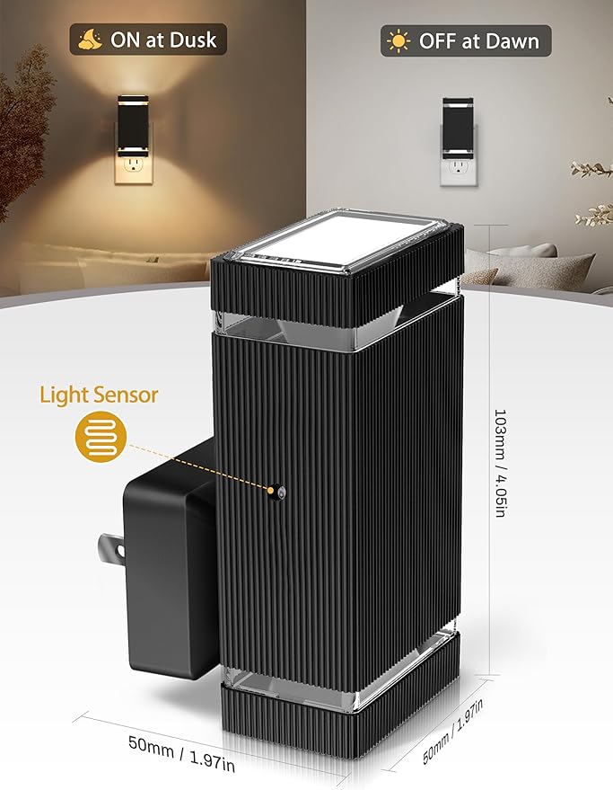 - AUTO ON/OFF: Equipped with advanced light sensing technology, this night light is both convenient and energy-efficient. Its built-in light sensor detects darkness, automatically turning on when needed and off when it's not. You won't have to worry about wasting energy, making it one of the best night lights with light sensors available.