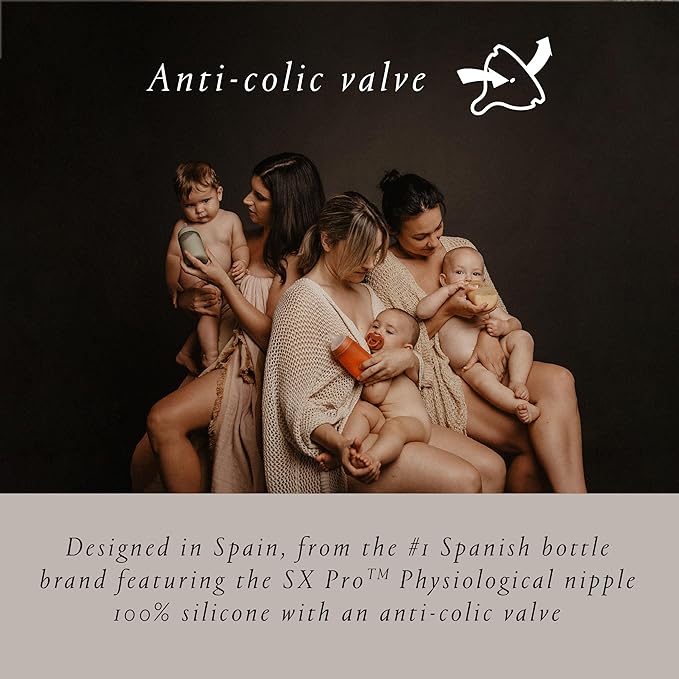 - SX Pro Physiological nipple made from 100% silicone with anti-colic valve. SX Pro nipple is designed to help the tongue remain in the same natural position as when the baby is breast feeding, aiding in correct positioning of the mouth, tongue & jaw.