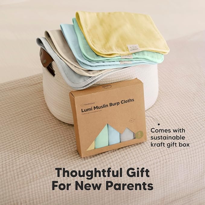 - Beautiful Neutral Palettes - The Lumi Muslin Burp Cloths are designed with gender neutral palettes for baby boys and girls. It is the perfect baby shower gift and baby registry gift for new parents. Comes with sustainable kraft gift box.