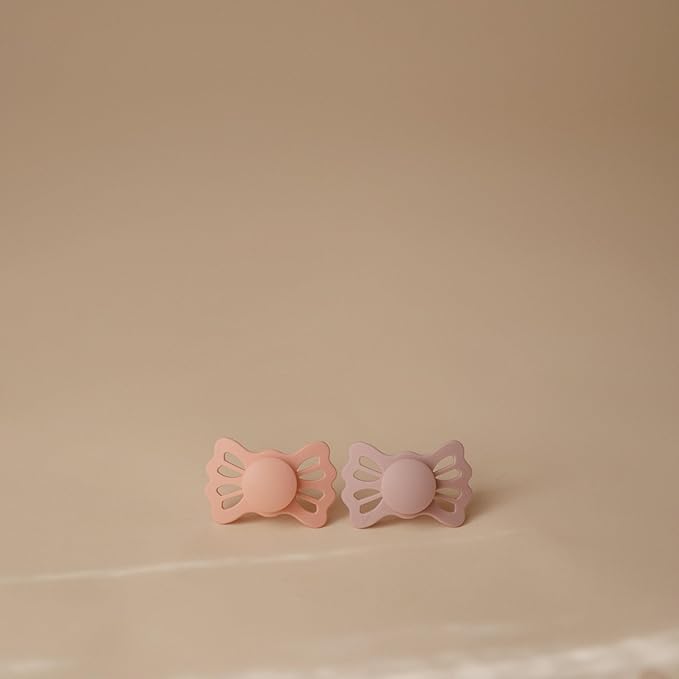 FRIGG Lucky Symmetrical SilkySoft Silicone Baby Pacifier | Made in Denmark | BPA-Free (Pretty in Peach/Primrose, 6-18 Months)