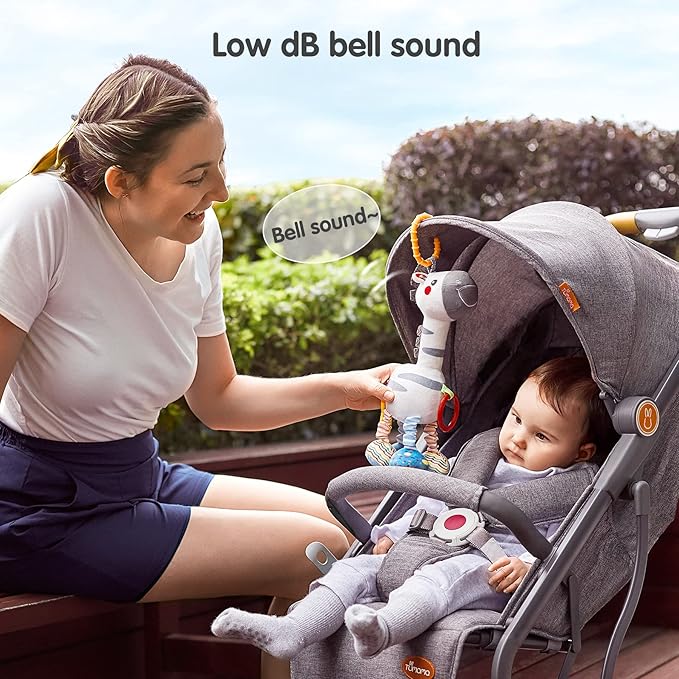- 【Baby Hanging Rattle Toy】- Lovely Zebra Design, interesting and colorful animals. Lovely Designed with a hanging ring easily to hang in the stroller,car seat and crib bed,baby gym,playing outdoor or indoor. Baby kids love these! Note : These Rattles don't play music tone, they can shake to ring sounds.