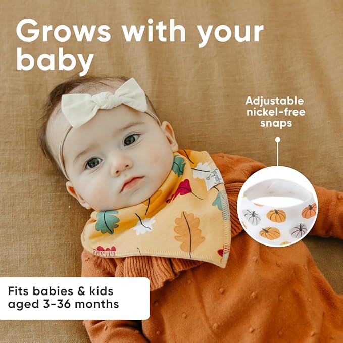 - GROWS WITH YOUR BABY: Each bib features two adjustable nickel-free snaps, allowing for a perfect fit from newborn through toddlerhood (3–36 months).