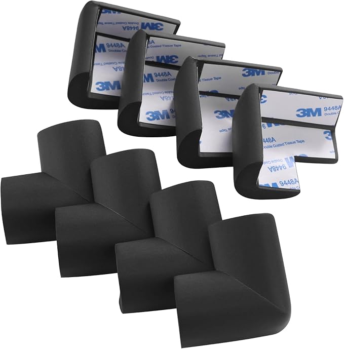 8 Pack Soft Sponge Table Corners, Corner Protector Baby, Baby Proofing Corner Guards, Pre-Taped Furniture Corner Protectors, Child Safety Furniture Bumper, Corner Protectors for furniturey, Black