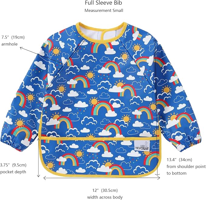 • Comments from Mommy:Mess Proof baby eating bibs Great for traveling or going to Grandmas and not having tochange her outfit a ton. Super easy to clean.can be reused without having to throw in the washer after one use. Also has adorable front pocket for any spills came in a nice box perfect for gifting and baby shower gift use and put this in the diaper bag, use it at home or in restaurants baby bibs for boy,bib with sleeves
