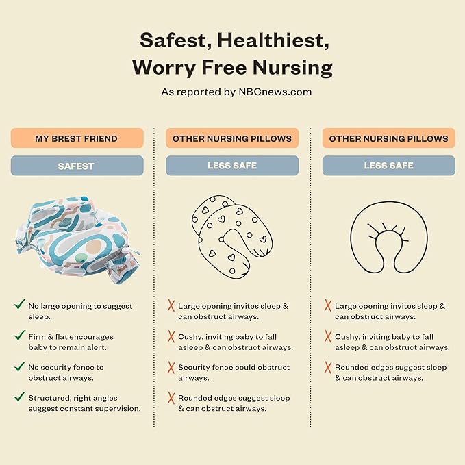 - SUPERIOR LUMBAR SUPPORT: My Brest Friend's super deluxe nursing feeding pillow goes the extra mile with an improved backrest that promotes healthy posture, reducing the risk of aching back or neck muscles. The adjustable silent-release straps ensure quiet & discreet removal while your baby peacefully sleeps.