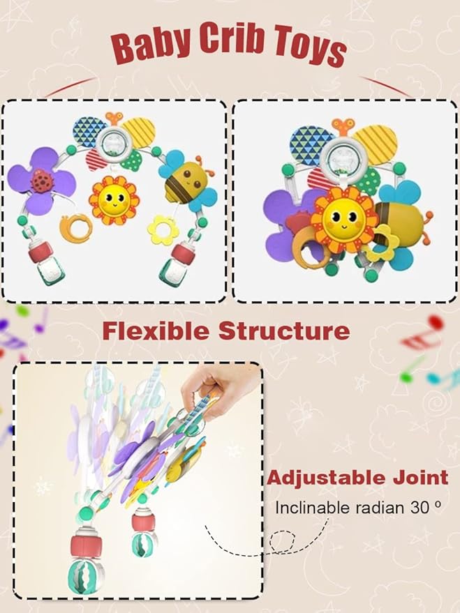 - Car seat toys,It is an early development toy.crib toys hanging made of washable materials.Each stroller toy can be detachable dsassembled and played separately.