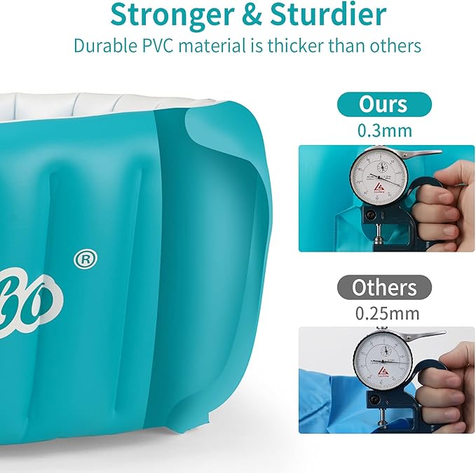 - ★【Mutifunctional inflatable pool】In addition to a bathtub for baby, it can be used as a ball pit, sand box, toys pool, fishing game pool, beach and camping. Great for baby Travel and baby camping gear.