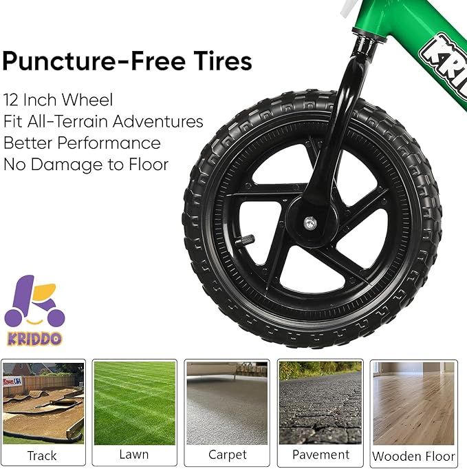 - EXTRA-THICK ALL-TERRAIN TIRES – We want kids to feel strong and stable when they’re moving on grass and sidewalks which is why we added puncture-resistant tires to the front and back of each balance bike for 3-year old’s and 18-month-old riders.