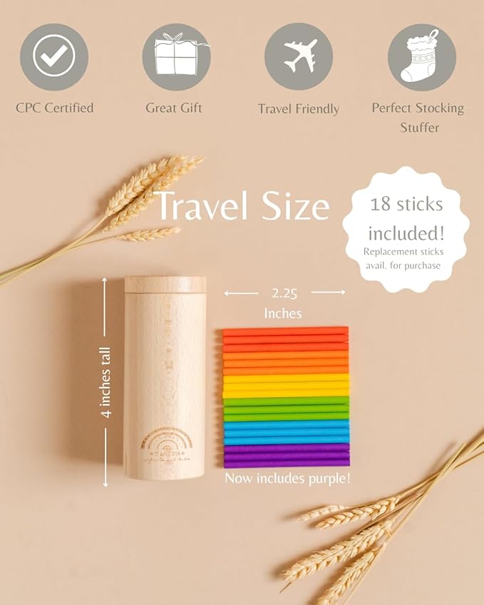 Sticks for Kids Travel Size, Montessori Toys for 1-3 Year Old, 1 Year Old Gift, Wooden Toddler Toys, Toddler Stocking Stuffer, Learning Toys for 1-3 Years
