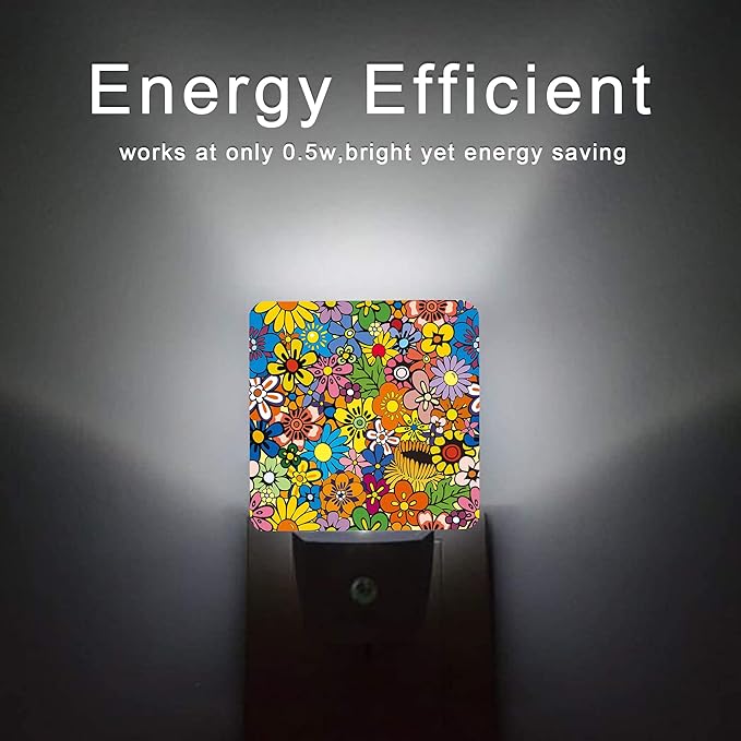 Hippies Flowers Night Light,Hippie Night Lights Plug into Wall 0.5W Sleep Friendly for Boys Girls Led Night Light Dusk to Dawn Sensor Nightlight for Stairway/Hallway/Bedroom